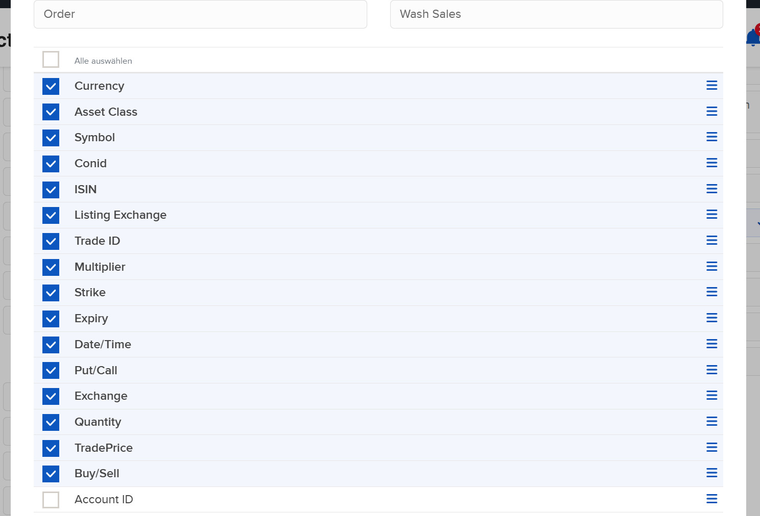 To analyze your trading statistics, add all the trade information selected above to your Flex-Query.